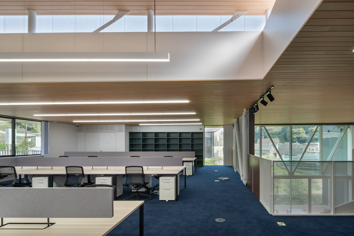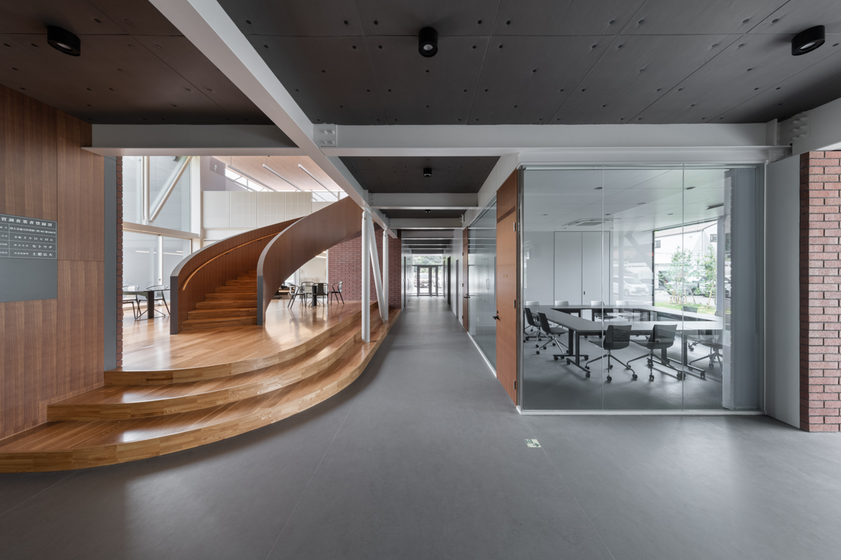 和泉氏は、広島県竹原市内に新築した株式会社セトウチの新本社ビルは、特に印象に残るプロジェクトとしています。前職では学校や市役所などの公共建築を手がけており、10,000㎡を超える大規模な案件も多かった中、新本社ビルは1000㎡ほどの規模。決して大きくはないものの、どれだけ多様な環境を作れるかを追求した点が特徴です。